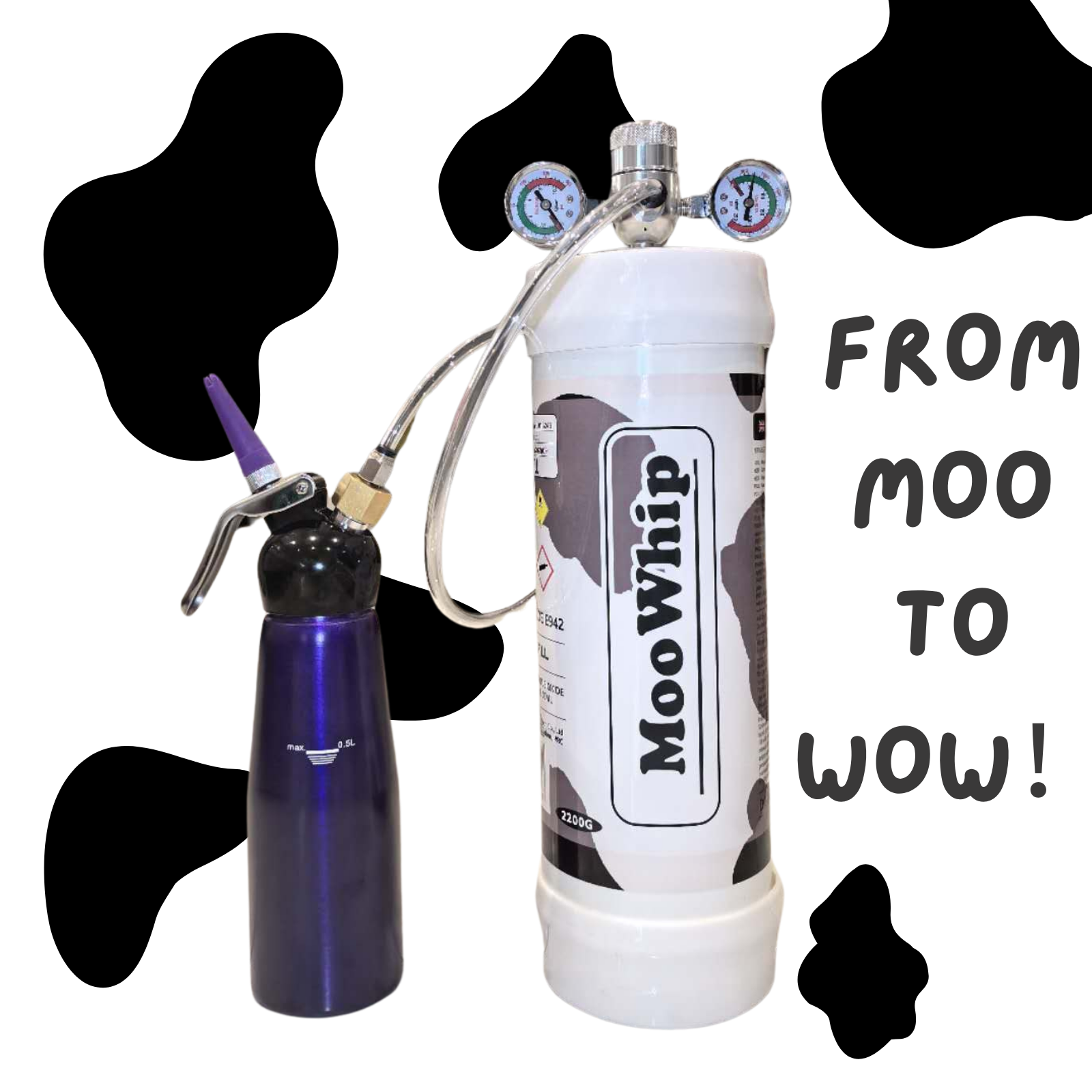Moowhip redefines whipped cream with our stylish gas cylinders. Our commitment to quality ensures you enjoy smooth, fluffy whipped cream every time, while our unique design adds a fun touch to your kitchen.