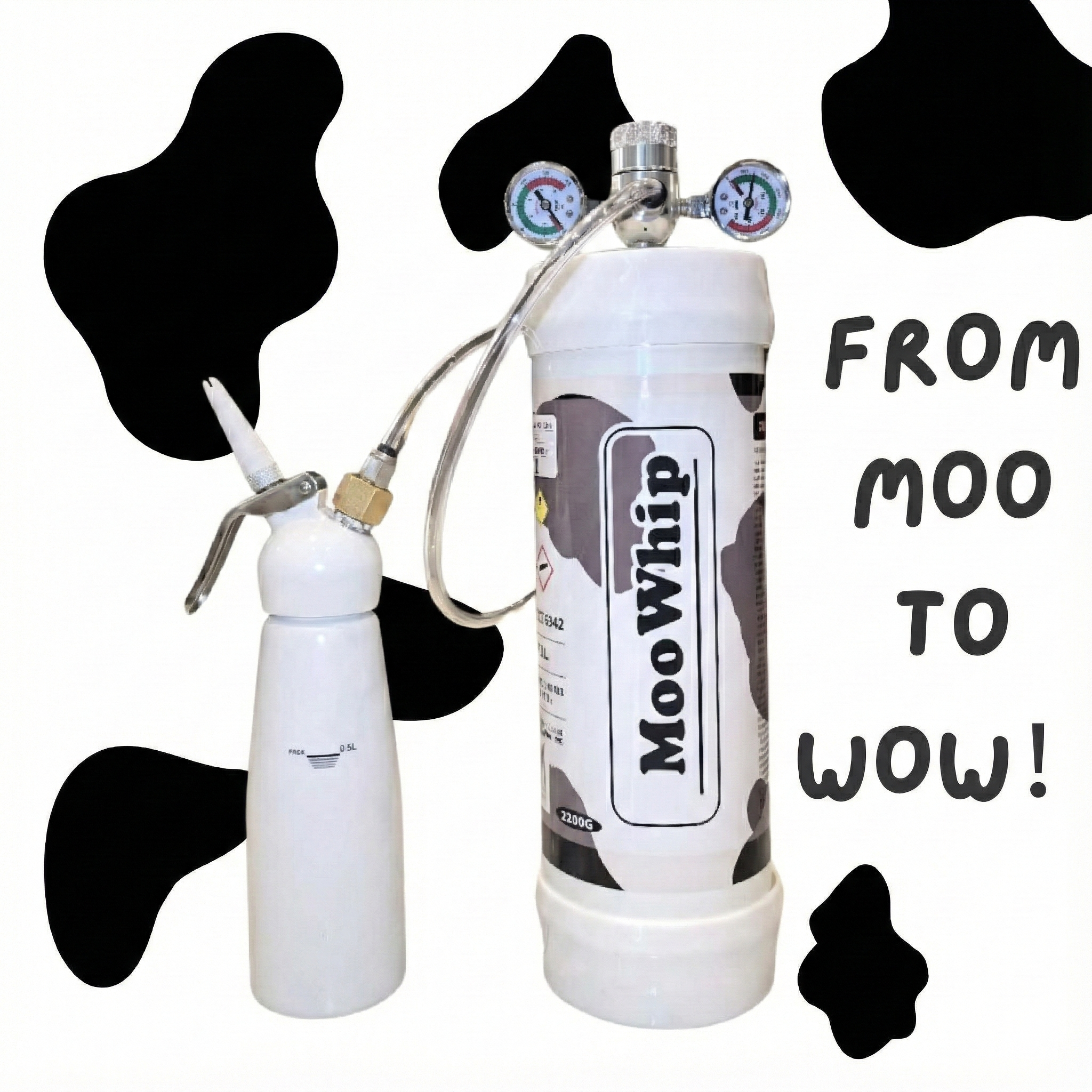 Moowhip redefines whipped cream with our stylish gas cylinders. Our commitment to quality ensures you enjoy smooth, fluffy whipped cream every time, while our unique design adds a fun touch to your kitchen.